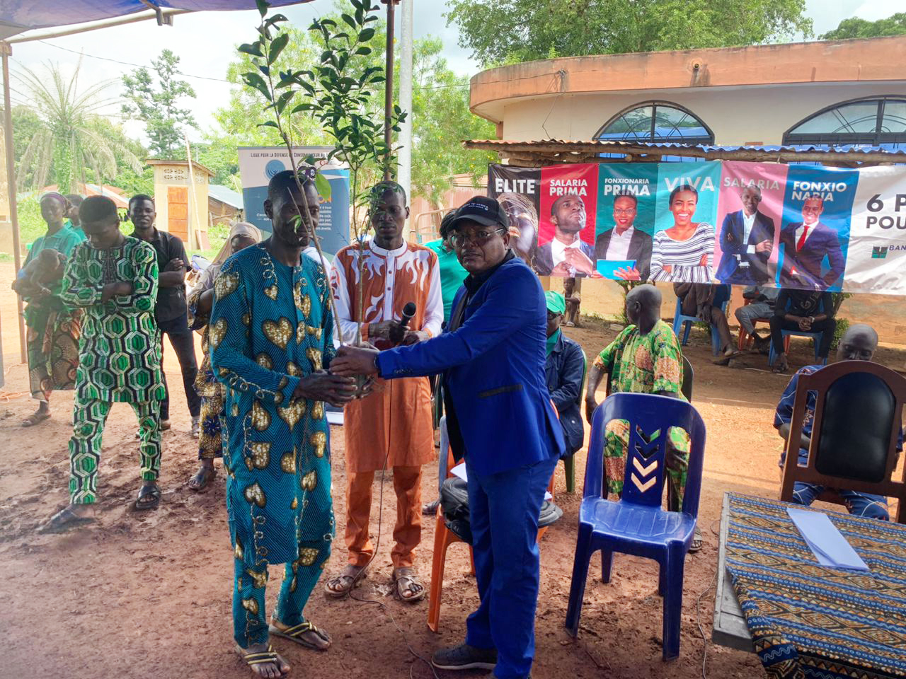 Cette année, l’opération s’est déroulée dans la ville de Pobé (100 km au sud-est de Cotonou, tout près du Nigeria) où 250 ménages ont chacun a reçu un corossolier et un citronnier.
